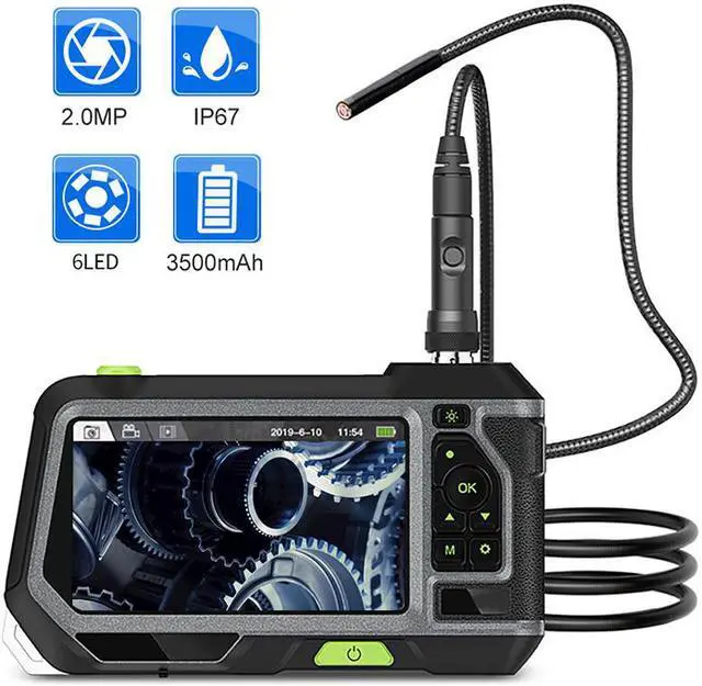 NTS500-5.5mm 5.0 LCD Screen 3M Single Lens Industrial Endoscope IP67 Camera 1080P 2.0MP HD Pipe Car Inspection Borescope 32GB 360 Rotation