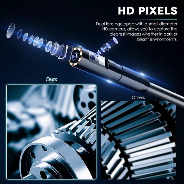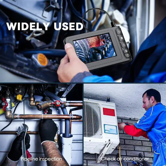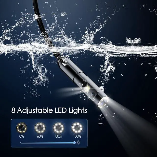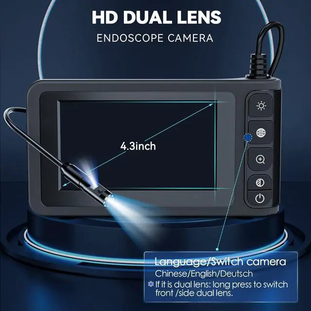 Dual Lens Industrial Endoscope Borescope Camera with Light, 4.3'' LCD Screen HD Digital Snake Camera Handheld Waterproof Sewer Inspection Camera with 8 LED Lights, 16.5FT Semi-Rigid Cable