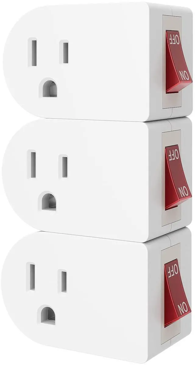 oviitech 3 Pack Grounded Outlet Wall Tap Adapter with On/Off Power Switch
