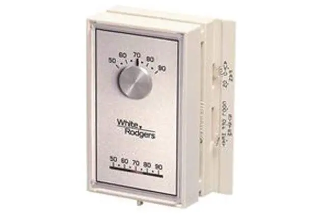 White Rodgers 1H/1C Universal Thermostat Single Stage Compatible with single-stage heating, cooling, and heat pump systems, without aux has Three wire zone mounting plate. Packaging is bilingual (English/Spanish) and includes a complete model cross-reference Horizontal and Vertical Models for 24V, 3-Wire Zone Single Stage and Millivolt Applications
