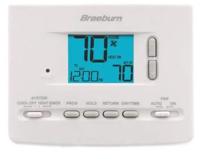 The Braeburn 2220NC Programmable Thermostat offers a reliable and efficient way to manage your home's heating and cooling needs. Designed for 5-2 day programming, it allows you to customize temperature settings for weekdays and weekends, ensuring comfort when you're home and energy savings when you're not.