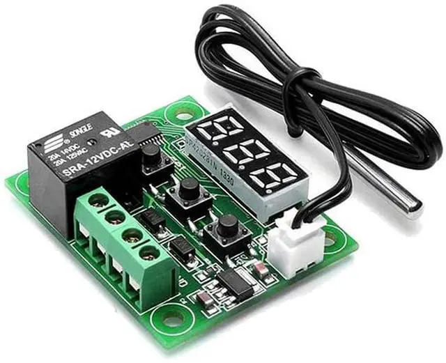 W1209 thermostat module controller has sensor input, buttons, LED display and relay. Can be reprogrammed for control, timing or counting.