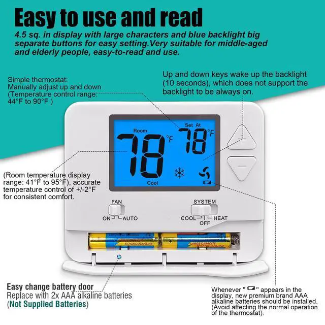 Suuwer S701 Single Stage Non-Programmable Digital Thermostats for Home 1 Heating and 1 Cooling Single-Stage Systems. ( Dual powered by 24VAC power or 2 AAA batteries, No common wire (c-wire) required on most systems).