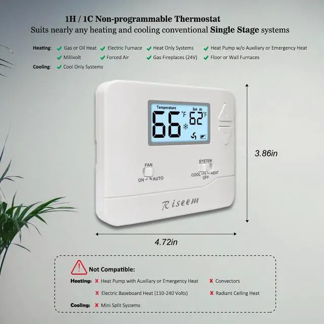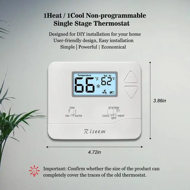 Simple thermostat for home,room temperature controller,temperature regulator for heating and cooling,house furnace,gas fireplaces,AC unit,millivolt control panel,temperature switch,non programmable thermostat,push button wall thermostat DIY,hvac fan