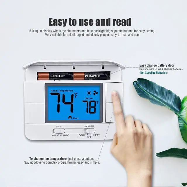 Aowel non-programmable thermostat for house up to 1 heating and 1 cooling single stage heating and cooling systems.