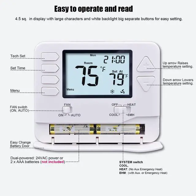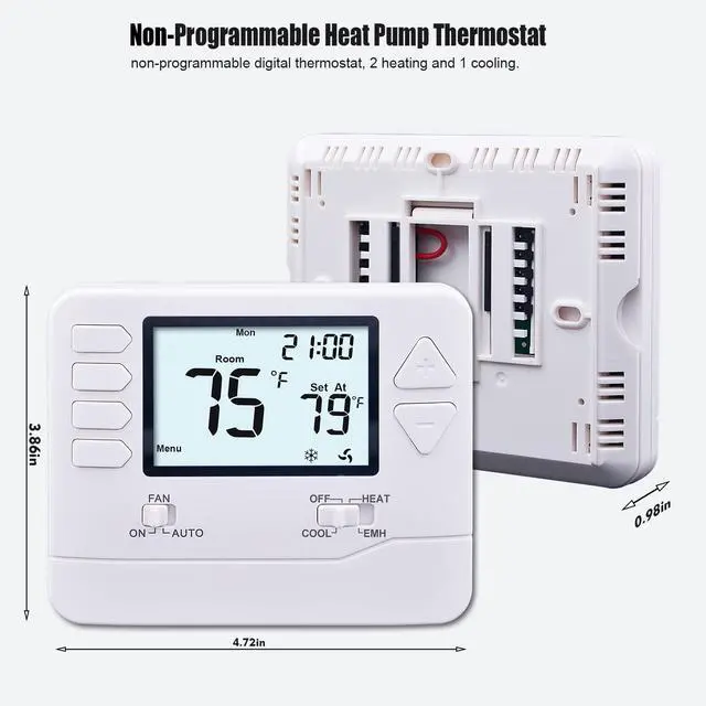 This is a 24VAC heat pump system non-programmable thermostat for home