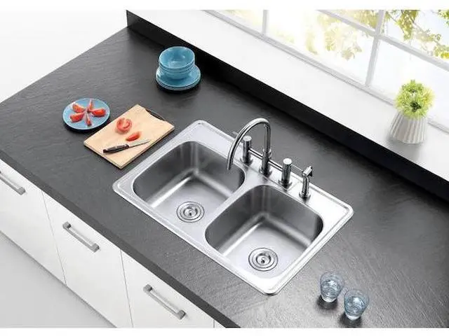 Seamlessly interweaving elements from both modern and classic design, The Studio collection features various kitchen and bath fixtures that embody the finest design elements for a transitional style, fitting any home decor. Easy to install or replace, drop-in sinks have a self-rimming nature. The Studio Self-Rimming Double Bowl Kitchen Sink in particular, is constructed from high quality 304 grade rust-resistant stainless steel. The brushed finish is also resistant to scratches, and with the sink's sound dampening technology, sound and vibrations are reduced. Perfect for organizing, separate fruits and vegetables that need washing from dirty dishes, or allow dishes to dry on one half and be washed on the other with the provided double bowl.