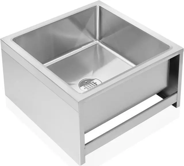 This stainless steel mop sink is designed for exceptional drainage with curved, angled corners on the sink's bottom. The fast and efficient draining helps save time when soaking and washing items and enables less water use when rinsing. This versatile floor mop sink allows for easy filling and rinsing of buckets, and it easily cleans floor mops, other large cleaning tools, and even sports equipment.
