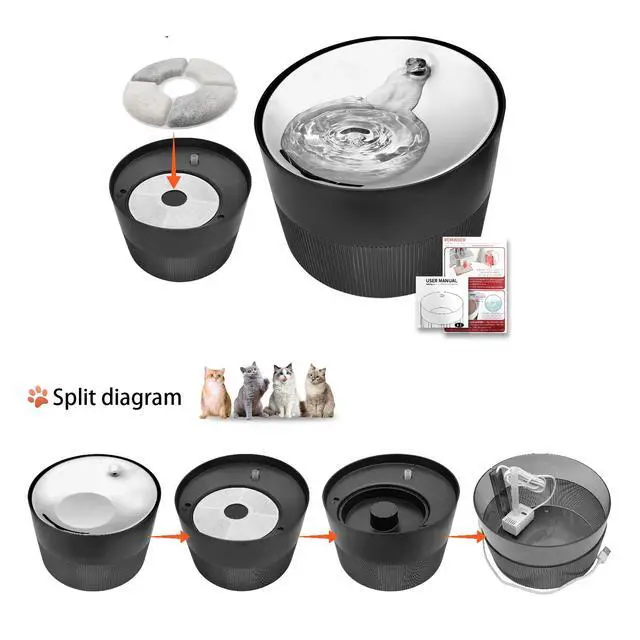 Perfect for Busy Pet Owners! This 2.5L cat water fountain holds enough water for your cat to drink for days, with an emergency water reserve for power outagesno more frequent refills.