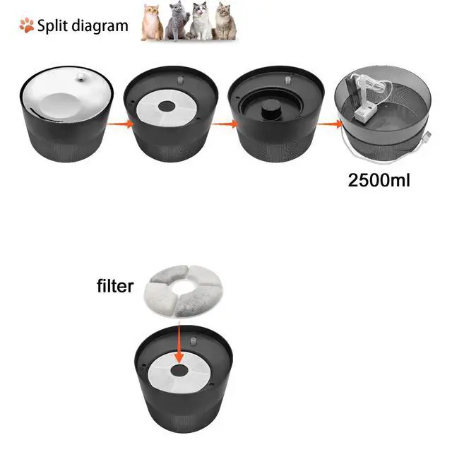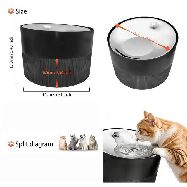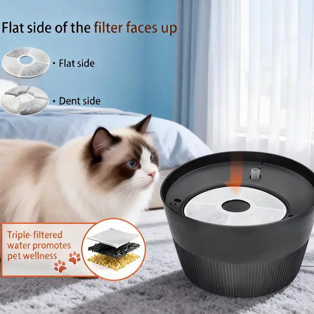 Ultra Quiet & Long-Lasting Cat Water Fountain! With a super silent water pump and optimized flow design, the noise is controlled below 30dBquieter than a whisper, ideal for bedrooms, living rooms, or small apartments.