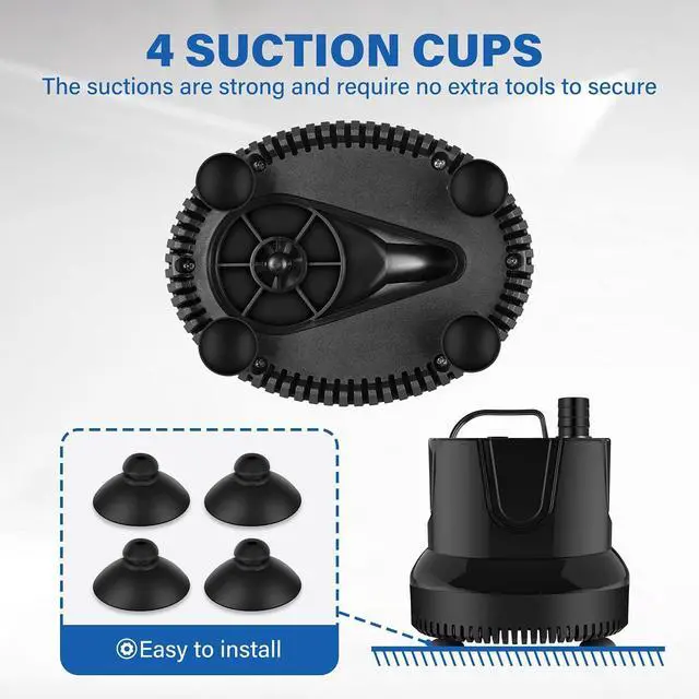 • Bottom Suction Design: Our submersible water pump features a bottom inlet design, provides powerful suction, can easily pump even as low as 1cm water levels; The 360°omnidirectional filtering, solving the problem of cleaning your fish tank.