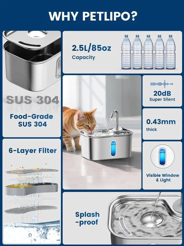 Petlipo combine functionality with modern aesthetics to provide pets with a healthier, more enjoyable drinking experience.