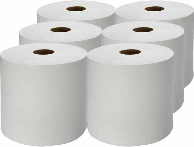 Hardwound Roll Towels offer a high capacity to provide storage space, maintenance and labor savings vs. folded towels. Heavily embossed design provides a better feel and aid in absorbency. 1-7/8" core size is compatible with most universal dispensers. Perfect towel solution for high-traffic restrooms. Towels are made with a high percentage of recycled material.