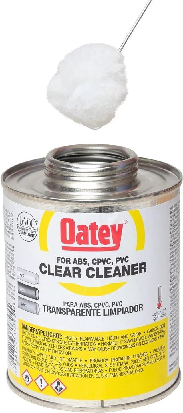 Surface Cleaner, Container Size 8 oz, Container Type Can, Cured Color Clear, For Use on Adhesive Type Pipe, Product Type Surface Cleaner, Standards BAAQMD Method 40, NSF Listed, SCAQMD 1168/316A, Minimum Performance Temperature 200 Degrees F. This item has been restricted from sale in the following state (s): []
