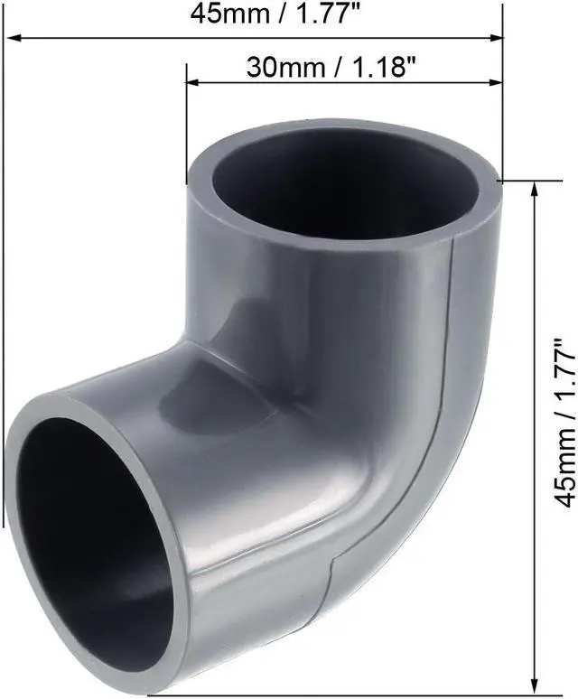 2.This 90-degree elbow fitting, or "ell," connects two pipes at a 90-degree angle to change the direction of flow between pipes. It has female slip openings for sliding over the ends of male unthreaded pipes. The slip ends connect to pipes with a smooth bore for enhanced flow.