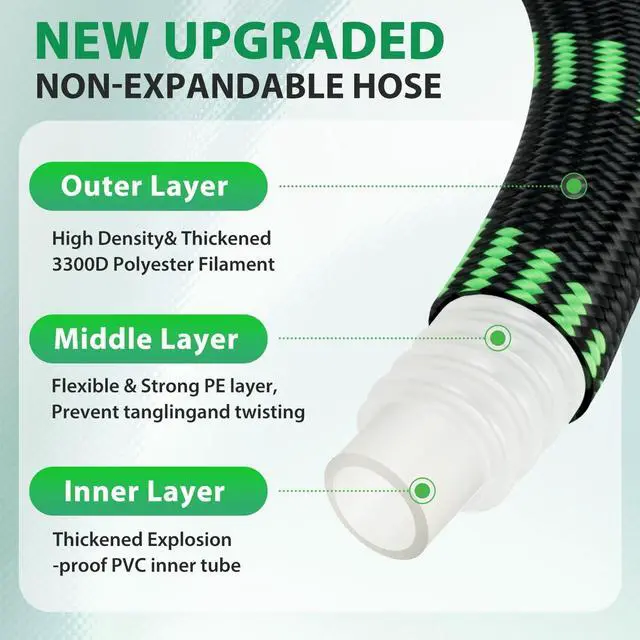 Non-Expandable Hose for Steady Water Flow: Unlike expandable hoses, the Ahititi non-expanding garden hose maintains a fixed length during use, delivering a stable and uninterrupted water flow. Its no-shrink, no-stretch design helps protect the inner tube from tearing or puncturing, enhancing long-term durability. Flexible yet strong, it helps prevent kinking, twisting, or tangleing, providing reliable performance for heavy-duty watering and everyday gardening tasks