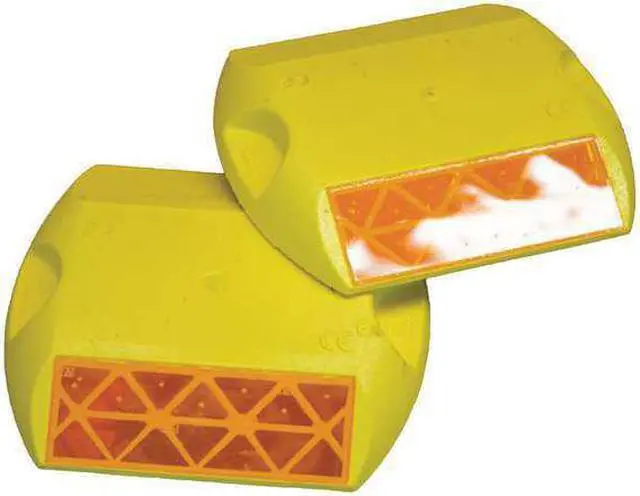 Pavement Marker, Yellow, Direction One Way, Length 4 in, Width 3 3/4 in, Height 5/8 in, Thickness 5/8 in, Material Retroreflective Polymer, Installation Method Manually or Use Adhesive Pads, Standards DOT, USDOT, FHWA, CALTRANS, NHTSA, Package Quantity 100. This item has been restricted from sale in the following state (s): []