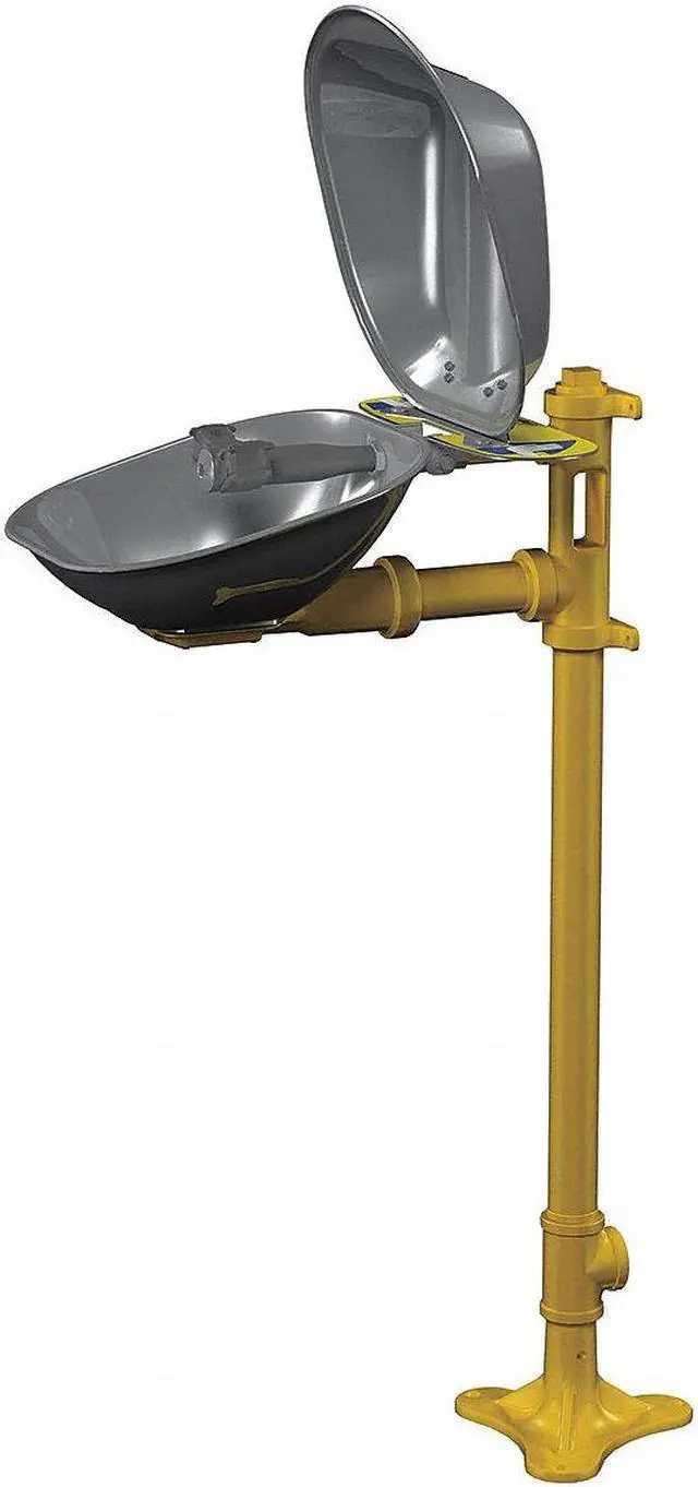 California Proposition 65: This product contains a chemical known to the State of California to cause birth defects or other reproductive harm. Plumbed Eyewash, Activation Push Plate, Barrier Free Yes, Bowl Style Covered, Color Yellow, Coverage Eyes, Depth 10 3/4 in, Height 41 1/2 in, Width 15 1/2 in, Environment General Purpose, Eyewash Bowl Material Stainless Steel, Hazardous Location Rating Not Rated, Includes Inspection Tag, Universal Identification Sign, Includes Foot Pedal No, Inlet Pipe Gender Female, Inlet Pipe Size 1/2 in, Inlet Pipe Thread Type NPT, Pipe Material Galvanized Steel, Series Halo, Mount Type Floor. This item has been restricted from sale in the following state (s): []