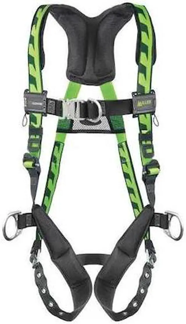Full Body Harness, Harness Sizing L/XL, Weight Capacity 400 lb., Chest Strap Buckles Quick-Connect, Leg Strap Buckles Tongue, Harness D-Ring Material Steel, Standards ANSI A 10.32, ANSI Z 359.11, CSA Z 259.10A, D, L, P, OSHA 1910.66, OSHA 1926.502 (d), Series AirCore (TM), Harness Style Vest, Brand and Series Honeywell Miller AirCore (TM), D-Ring Locations Back, Chest, Hips. This item has been restricted from sale in the following state (s): []