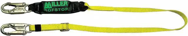 Shock-Absorbing Lanyard, Anchorage End Connection Steel Snap Hook, Anchorage End Connection Material Steel, Anchorage End Connection Type Snap Hook, Brand and Series Honeywell Miller SofStop (TM), Color Yellow, Hardware Material Steel, Harness Connection Steel Snap Hook, Harness Connection Gate Opening Size 3/4 in, Harness End Connection Snap Hook, Harness End Connection Material Steel, Includes Rescue Ring No, Max. Working Length 6 ft, Shock Absorbing Type Shock Pack, Visual Load Indicator Yes