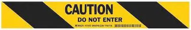 Floor Marking Tape, Continuous Roll, Message, Striped, Black/Yellow, 2 in, 100 ft, 4 mil, Vinyl, Brady (R), Series B-7569, Legend CAUTION DO NOT ENTER, Message Color Black, Glow In The Dark No, Retroreflective Grade Non-Reflective, Tape Finish Gloss