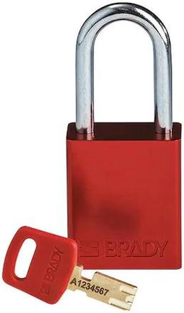Lockout Padlock, Key Type Different, Body Material Aluminum, Shackle Dia. 1/4 in, Shackle Height 1 1/2 in, Shackle Material Steel, Shackle Width 13/16 in, Body Width 1/2 in, Body Thickness 3/4 in, Legend Danger Locked Out Do Not Remove, Includes (3) Padlocks, (3) Keys, Standards OSHA 29 CFR 1910.147, Body Height 1 13/16 in, Body Finish Anodized, Body Color Red, Shackle Type Open, Number of Bumpers 0, Control Key Registration Required No. This item has been restricted from sale in the following state (s): []