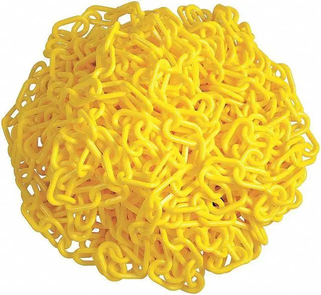 Plastic Chain, Length 100 ft, Color Yellow, Material Polyethylene, Finish Unfinished, Link Outside Length 1 in, Link Inside Length Not Applicable, Link Inside Width Not Applicable, Reflectivity Non-Reflective, Indoor/Outdoor Usage Indoor, For Use With Indoor Use Only, Resistance Properties Rust Resistant, Standards RoHS Compliant 2011/65/EU, RoHS Compliant 2015/863