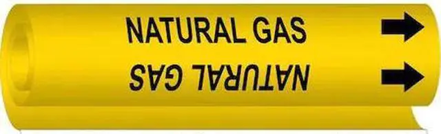 Pipe Marker, Pipe Marker Mounting Style Wrap-Around Pipe Marker, Pipe Marker Legend Natural Gas, Legend Text Color Black, Character Height 1/2 in, Background Color Yellow, With or Without Arrows With