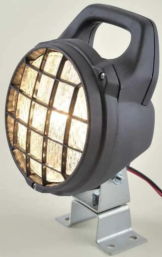 Work Light, Overall Depth 9 in, Mount Type Bracket, Operating Voltage 12V DC, Lighting Technology Halogen, Overall Diameter 5 1/2 in, Overall Height 5 in, Head Shape Round, Overall Width 5 1/2 in, Wattage 55 W, Mount Style Surface, Current 4.6 A, Housing Material Plastic, Includes 6 in Lead Wire, Fully Adjustable Mounting Bracket, Hardware, Lens Material Polycarbonate. This item has been restricted from sale in the following state (s): []