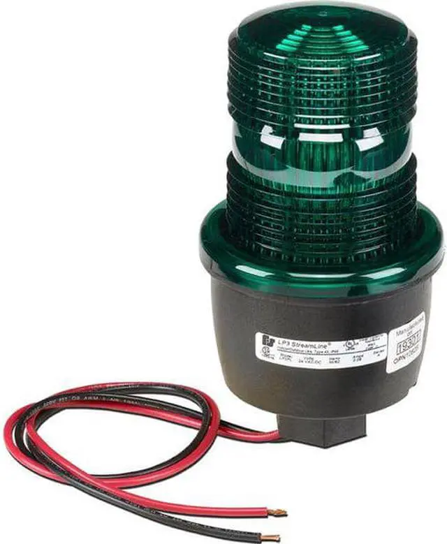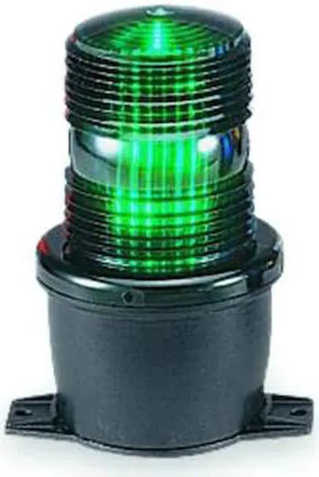 Warning Light, Color Green, Lamp Type Steady Burn LED, Flashes per Minute Not Applicable, Light Output 4.1 Joules, Lamp Life 100, 000 hr, Lens Design Screw-on Dome, Lens Material Polycarbonate, Housing Material Polycarbonate, Mounting (F) 1/2 in NPT, Operating Temp. -31 Degrees to 150 Degrees F, Rating NEMA 4X, Power Source Wire, Current Drawn 0.13A AC, Depth 5 5/8 in, Height 5 3/4 in, Voltage 120V AC