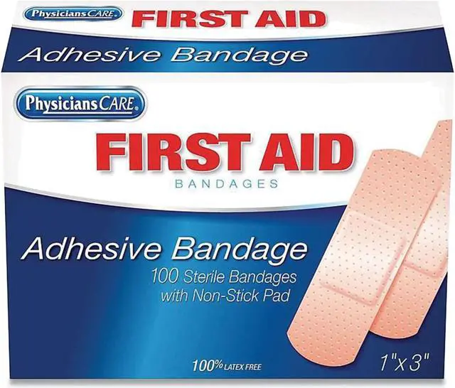 Wound dressing adhesive plastic bandages. Pliable vinyl is ventilated to aid healing. Stand alone packaging for larger size first aid kits and cabinets. Bandages Type: Strip; Material(s): Plastic; Mounting: With Adhesive; Length: 3".