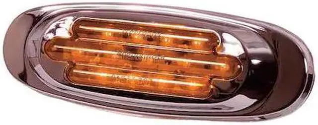 Clearance Marker Light, Light Type Clearance Light, Lighting Technology LED, Shape Oval, Mount Style Surface, Lens Color Amber, Mount Type Hole, Overall Diameter Not Applicable, Overall Height 2 in, Overall Width 6 5/8 in, Standards SAE J592E, IP Rating IP67, SAE Lens Code P2, Series Not Applicable, Vehicle Class 1, 2, 3, 4, 5, 6, 7, 8, Current 60 mA, Electrical Connection PL-2 Connector, Housing Material Polycarbonate, Includes Stainless Steel Bezel, Installation Type Permanent.