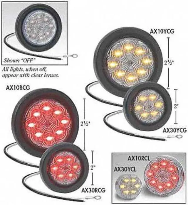 Clearance Marker Light, Light Type Clearance Light, Lighting Technology LED, Shape Round, Mount Style Surface, Lens Color Amber, Mount Type Grommet, Overall Diameter 2 in, Overall Height Not Applicable, Overall Width Not Applicable, Standards SAE J592E, IP Rating IP67, SAE Lens Code P2, Series Not Applicable, Vehicle Class 1, 2, 3, 4, 5, 6, 7, 8, Current 40 mA, Electrical Connection PL-2 Connector, Housing Material Polycarbonate, Includes Electrical Connection Electrical Connection Included. This item has been restricted from sale in the following state (s): []