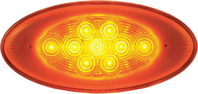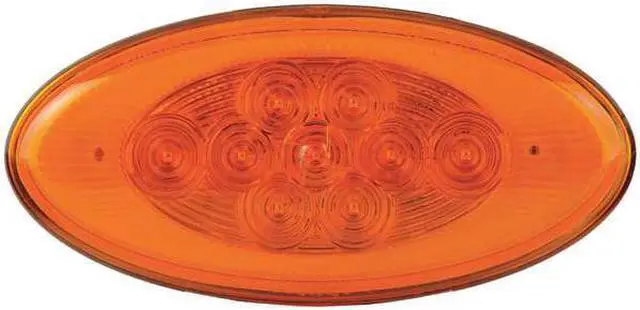 Clearance Marker Light, Light Type Marker Light, Lighting Technology LED, Shape Oval, Mount Style Surface, Lens Color Amber, Mount Type Hole, Overall Diameter Not Applicable, Overall Height 2 in, Overall Width 4 3/8 in, Standards SAE J592E, SAE J914, IP Rating IP67, SAE Lens Code E2, P2, P3, Series M63122 Series, Vehicle Class 1, 2, 3, 4, 5, 6, 7, 8, Current 100 mA, Electrical Connection Blunt Cut Wires, Housing Material Polycarbonate, Includes Nut, Stud, Installation Type Permanent.