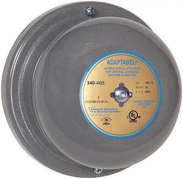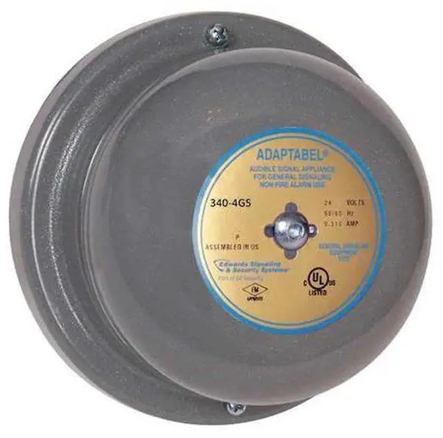 Audible Alarm Type Bell, Visual Indicator Type No Visual Indicator, Voltage 24V AC, Decibels 88 dB, Sound Pattern Continuous, Indoor/Outdoor Indoor, Outdoor, Mounting Surface, Height 4 in, Width 4.5 in, Depth 2.4063 in, Diameter 4.5 in, Vibrating Yes, Housing Material Steel, Features Weatherproof By Adding Appropriate Back Box, Standards FM, UL Listed, Amps 0.250A, Color Gray, Includes Hardware, Bell. This item has been restricted from sale in the following state (s): []