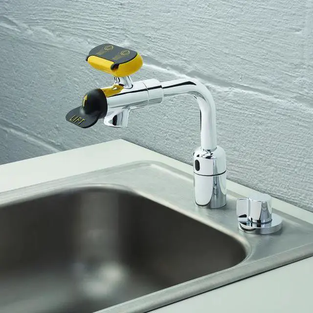 California Proposition 65: This product contains a chemical known to the State of California to cause birth defects or other reproductive harm. A revolution in safety and convenience, the Eyesaver® SEF-18107 combines a fully functional sensor-operated laboratory faucet with an independently operated eyewash. The patented design incorporates two separate water channels in the faucet body: one for the eyewash and the other for the faucet. The design assures that the integrated emergency eyewash delivers a safe, tepid water temperature to the eyes each and every time. The front-facing sensor incorporates advanced laser technology, emitting a non-visible beam of light for instant on and off operation of the daily use faucet.