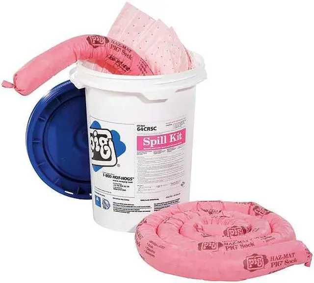 Spill Kit/Station, Container Type Drum, Spill Control - Fluids Absorbed Chemical, Hazmat, Volume Absorbed per Pkg. 3.6 gal, Container Capacity 6.5 gal, Height 17 5/8 in, Width 13 3/8 in, Length 13 3/8 in, Wheels No, Lockable No. This item has been restricted from sale in the following state (s): []