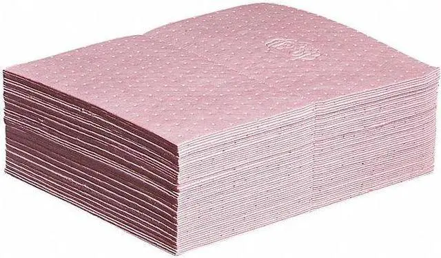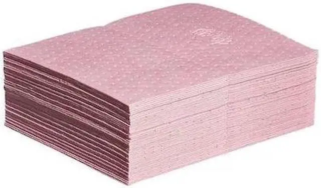 Product Type Sorbent Pad, Fluids Absorbed Universal, For Use With Chemical or Metal Type Universal, Bases, Corrosives, Hazardous Chemicals, Size 15 in x 20 in, Volume Absorbed Per Pad 28 3/16 oz, Volume Absorbed per Pkg. 11 gal, Color/Pattern Pink, Material Polypropylene, Number of Layers 8, Perforated Perforated, Perforated Size 10 in x 15 in, Package Quantity 50. This item has been restricted from sale in the following state (s): []