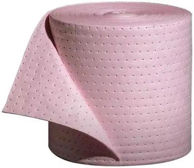 Product Type Sorbent Roll, Fluids Absorbed Universal, For Use With Chemical or Metal Type Universal, Bases, Corrosives, Hazardous Chemicals, Size 15 in x 150 ft, Volume Absorbed Per Pad Not Applicable, Volume Absorbed per Pkg. 20 gal, Color/Pattern Pink, Material Polypropylene, Number of Layers 8, Perforated Perforated, Perforated Size 10 in x 15 in. This item has been restricted from sale in the following state (s): []
