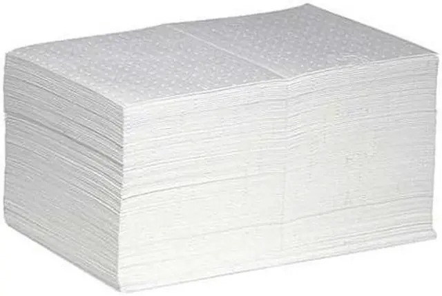 Product Type Sorbent Pad, Fluids Absorbed Fuels, Oils, For Use With Chemical or Metal Type Oil Only, Size 15 in x 20 in, Volume Absorbed Per Pad 22 1/2 oz, Volume Absorbed per Pkg. 17 gal, Color/Pattern White, Material Polypropylene, Number of Layers 8, Perforated Perforated, Perforated Size 10 in x 15 in, Package Quantity 100. This item has been restricted from sale in the following state (s): []