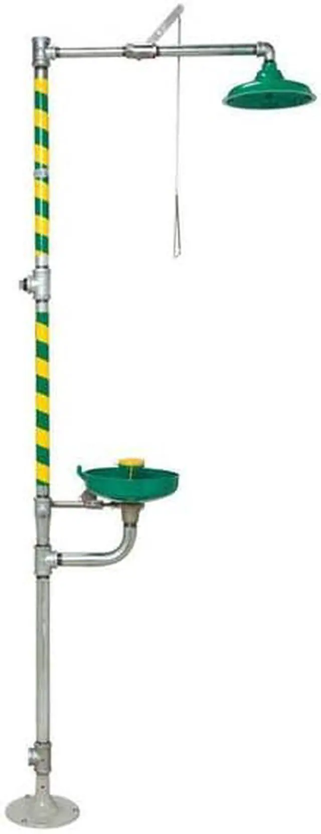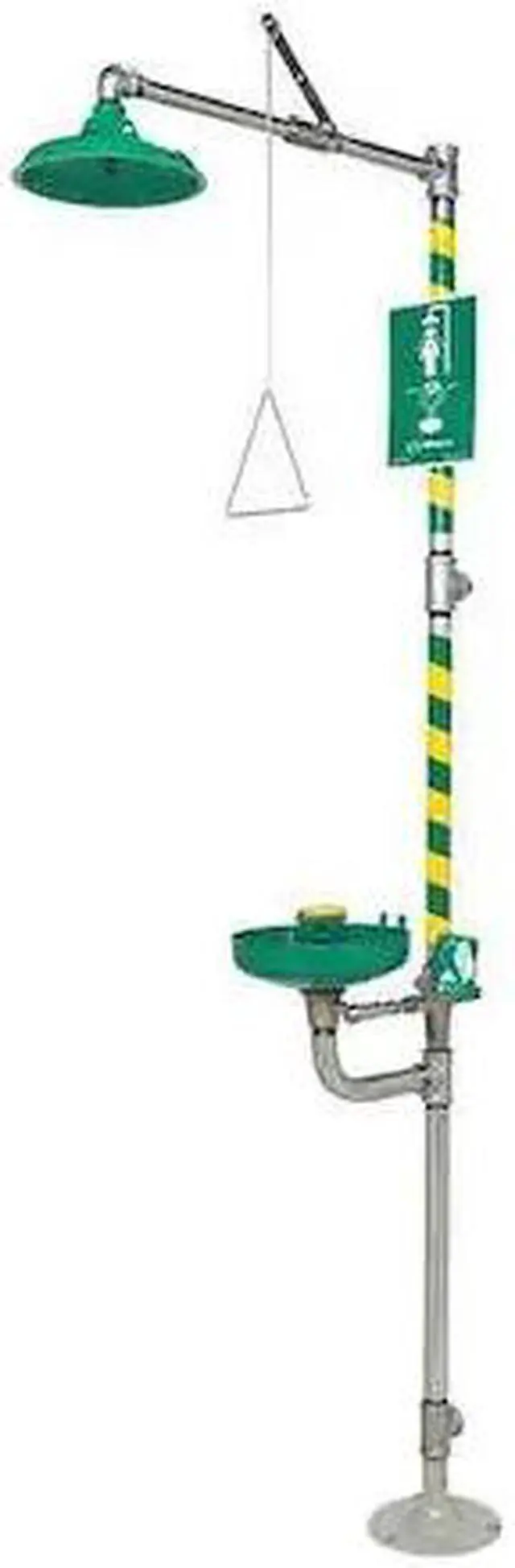 Shower with Eyewash, Barrier Free No, Bowl Style Uncovered, Coverage Eyes and Face, Eyewash Bowl Material Plastic, Hazardous Location Rating Not Rated. This item has been restricted from sale in the following state (s): []