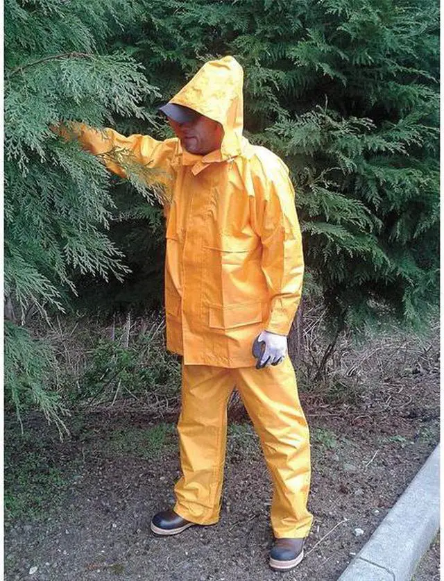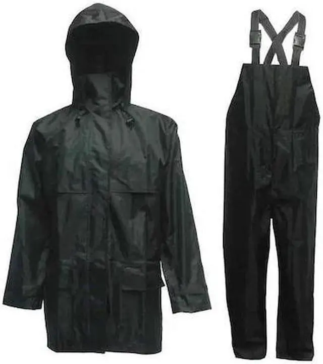 3-Piece Rain Suit with Jacket/Bib Overall, High Visibility No, Rainwear ANSI Class Unrated, S, Black, Rainwear Features Wind Resistant, Rainwear Primary Material Polyester, PVC, Hood Style Detachable, Hood Included Yes, Rainwear Ankle Style Hook-and-Loop, Rainwear Closure Type Hook-and-Loop, Storm Flap, Zipper, Rainwear Cuff Style Hook-and-Loop, Fits Chest Size 37 in, Fits Waist Size 30 in, Men's, Inseam 28 in, Jacket Length 31 1/2 in, Material 150D Rip-Stop Polyester w/ PVC backing. This item has been restricted from sale in the following state (s): []