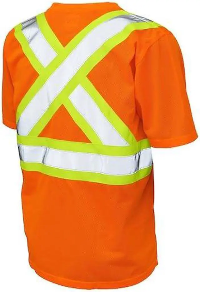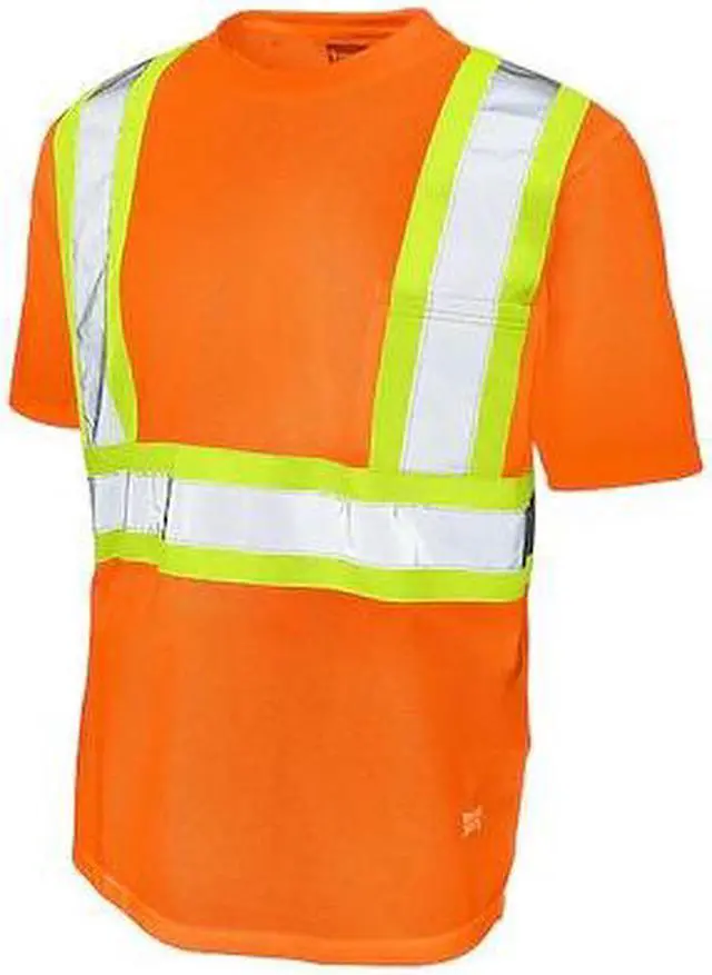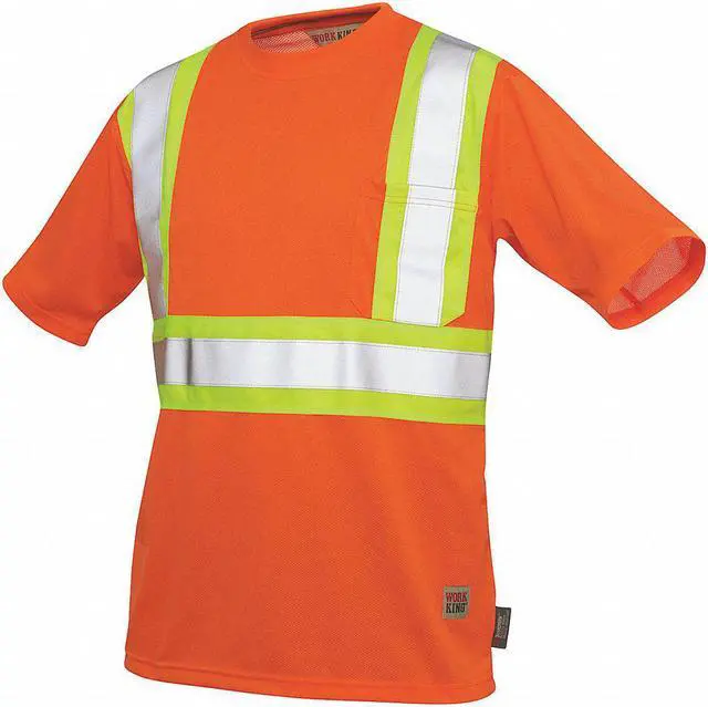 High Visibility Short Sleeve Shirt, Gender Men's, ANSI Class 2, Shirt Style T-Shirt, Material Polyester, Number of Outside Pockets 1, Color Orange, Size 3XL, Fabric Weight 3.67 oz, Standards ANSI, Sleeve Type Short, Maximum Chest Size 54 in, ANSI Type R, Features Polyester Micro Mesh with Wicking Treatment, Length 33 in, Minimum Chest Size 52 in, Moisture-Wicking Yes, Pocket Locations Chest. This item has been restricted from sale in the following state (s): []