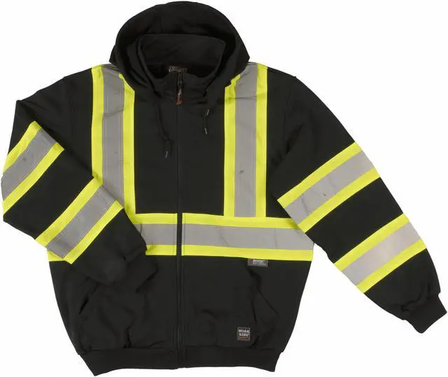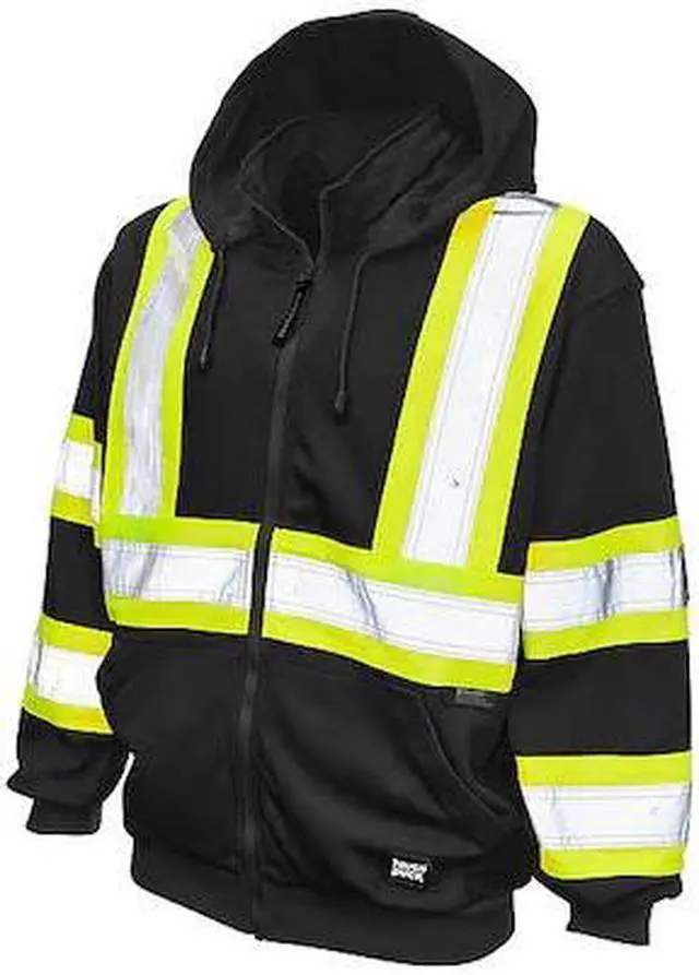 High Visibility Sweatshirt, ANSI Class 1, ANSI Type O, Sweatshirt Style Hoodie, Number of Outside Pockets 2, Gender Men's, Material Polyester, Front Closure Type Zipper, Color Black, Fabric Weight 8 oz, Size M, Includes Hood Yes, Standards ANSI 107-2015 Type O, Class 1, Maximum Chest Size 40 in, Hood Features Quick-Release Hood, Length 29 1/4 in. This item has been restricted from sale in the following state (s): []