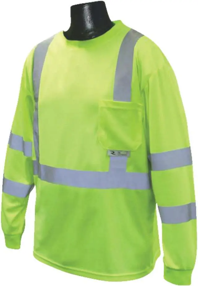 Long Sleeve Shirt, Gender Unisex, ANSI Class 3, Shirt Style T-Shirt, Back Stripe Pattern U, Material 100 Percent Polyester Mesh, Number of Outside Pockets 1, Front Closure Type Pullover, Color Green, Size 2XL, Fabric Weight 0.65 lb, Standards ANSI/ISEA 107-2035, Sleeve Type Long, Maximum Chest Size 23 41/64 in, Features Max-Dri (TM) Moisture Wicking Mesh Technology, Length 78 3/4 in, Moisture-Wicking Yes, Pocket Locations Left Chest. This item has been restricted from sale in the following state (s): []
