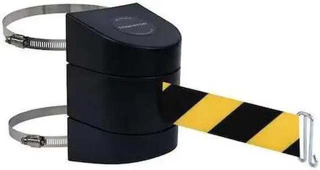 Retractable Belt Barrier, Mounting Style Hose Clamp Mounting Plate, Wire Clip, Belt Length 15 ft, Belt Color Black/Yellow, Belt Pattern Chevron, Frame Color Black, Number of Belts 1, Includes Hose Clamp Fixing, Wire Clip Belt End, Includes Mounting Hardware Included. This item has been restricted from sale in the following state (s): []