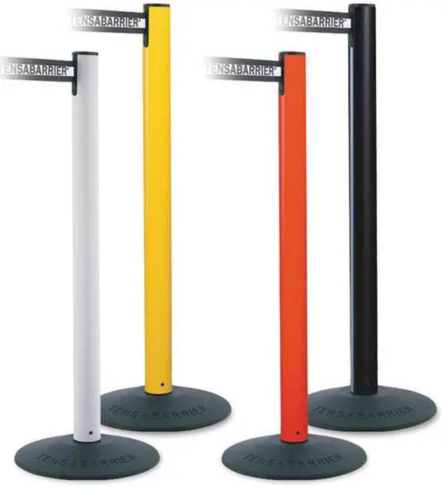 Barrier Post with Belt, Maximum Overall Height 37 1/2 in, Legend Caution Do Not Enter, Legend Color Black, Number of Belts 1, Belt Length 7 1/2 ft, Belt Width 2 in, Belt Color Yellow, Post Color Black, Product Type Stanchion, Minimum Overall Height Not Applicable, Post Diameter 2 1/2 in, Post Material Plastic, Post Finish Black, Base Type Basic, Base Diameter 14 in, Base Material Cast Iron, Base Finish Black ABS No Scuff Cover, Base Color Black, ADA Compliance Yes