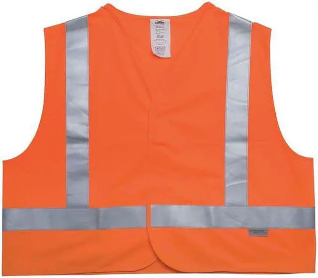 California Proposition 65: This product contains a chemical known to the State of California to cause birth defects or other reproductive harm. High Visibility Vest, ANSI Class 2, Vest Size 3XL, Traffic Safety Vest Color Orange/Red, Fits Chest Size 35 in, Gender Men's, Stripe Color Silver, Vest Material Polyester, Vest Closure Type Hook-and-Loop, ATPV Rating Not Rated, Vest Stripe Color Family Green/Yellow/Silver, Back Stripe Pattern U, Vest Length 30 in, Number of Pockets (Inside) 0, Number of Pockets (Outside) 0, Number of Pockets with Closure 0, Features 360 Degrees Visibility, Standards Meets ANSI-ISEA 107-2004. This item has been restricted from sale in the following state (s): []