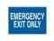 Safety Sign Emergency Exit, Horizontal Rectangle, Number of Printed Sides 1, English, Sign Format Other Format, Sign Legend Emergency Exit Only, Sign Legend Background Color Blue, White, Sign Legend Style Text. This item has been restricted from sale in the following state (s): []