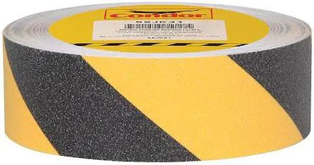 Width - Tape 2 in, Black/Yellow, Anti-Slip Tape, Aluminum Oxide, Acrylic Tape Adhesive, Continuous Roll Tape Shape, Length - Tape 60 ft, Striped Tape Pattern, Grit Size 46, Tape Adhesive Strength 75 oz/in, Glow-in-the-Dark No, Tape Legend No Legend, Thickness 0.03 in, Diameter 3 in, Kraft Paper, Die Cut No, Indoor/Outdoor Usage Indoor/Outdoor, -20 Degrees to 150 Degrees F, NSFI Certified for High Traction, Antislip Tape, Package Quantity 6. This item has been restricted from sale in the following state (s): []